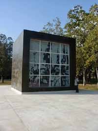 Abarca un área de cinco mil metros cuadrados y las dos entradas del monumento se marcan por figuras transparentes o siluetas caladas con cinco metros de alto por 3,75 de ancho.